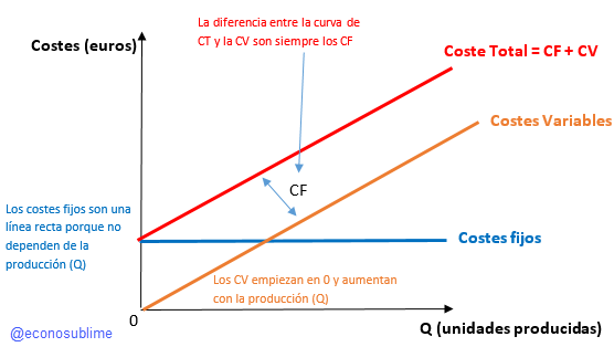 - Costes fijos (CF). Son aquellos que no dependen del volumen de producción. Por tanto, son costes